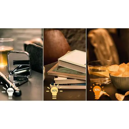 4. Dim to Warm: Durch Dimmen wird das Licht wärmer (gelber). Je stärker Sie dimmen, desto wärmer wird die Farbe.