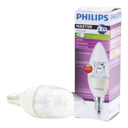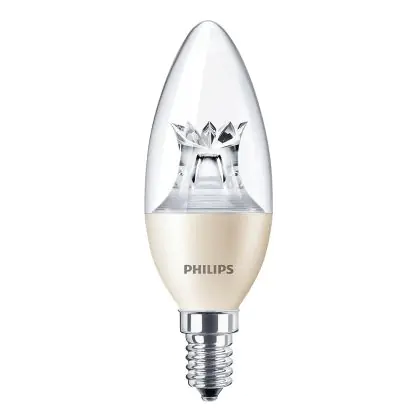 Die Philips MASTER LED Kerze E14 Krone Klar 2.8W 250lm - 822-827 Dim To Warm | Dimmbar - Ersatz Für 25W ist eine effiziente E14 LED-Lampe und der perfekte Ersatz für Ihre konventionellen 25W Lampen mit E14-Sockel. Zudem strahlt sie Licht in der Farbtemperatur 2200K - 2700K Dim To Warm aus und punktet durch eine lange Lebensdauer.