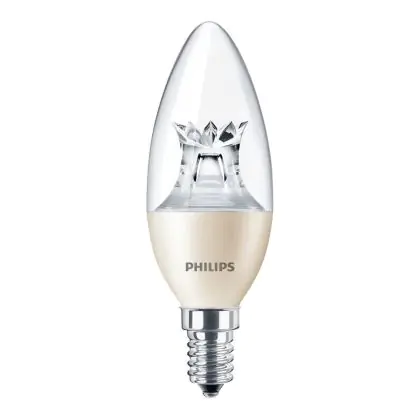 Die Philips MASTER LED Kerze E14 Krone Klar 8W 806lm - 822-827 Dim To Warm | Dimmbar - Ersatz Für 60W ist eine effiziente E14 LED-Lampe und der perfekte Ersatz für Ihre konventionellen 60W Lampen mit E14-Sockel. Zudem strahlt sie Licht in der Farbtemperatur 2200K - 2700K Dim To Warm aus und punktet durch eine lange Lebensdauer.