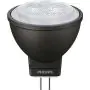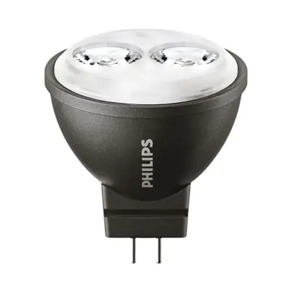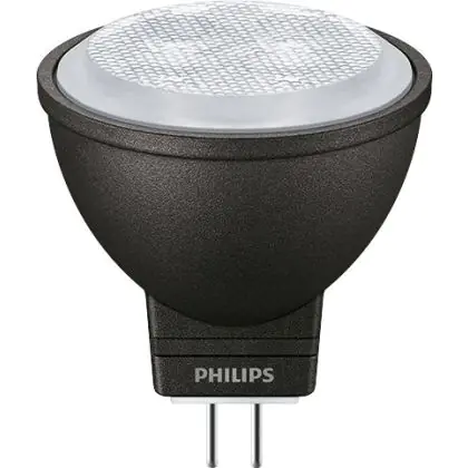 Die Philips Master LED Spot GU4 MR11 3.5W 200lm 24D - 827 Extra Warmweiß | Ersatz für 20W ist eine effiziente GU5.3 LED-Lampe und der perfekte Ersatz für Ihre konventionelle Halogenlampe mit 20W und einem GU5.3-Sockel, bei dem die beiden Stifte einen Abstand von 5,3 mm zueinander haben. Die Abkürzung MR16 zeigt Ihnen, dass der Reflektor einen Durchmesser von 5 cm hat. Zudem strahlt das Produkt Licht in der Farbtemperatur 2700K - Extra Warmweiß aus und punktet durch eine lange Lebensdauer.