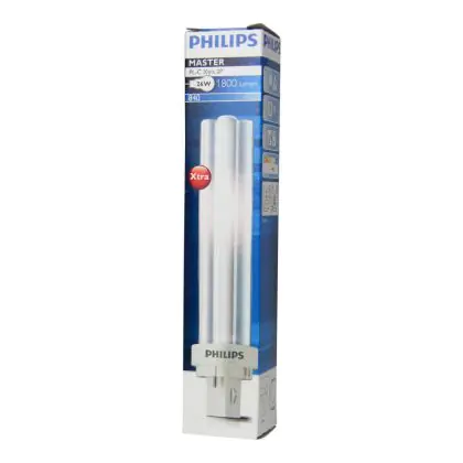 Die Philips MASTER PL-C Xtra 18W - 830 Warmweiß | 2 Pin ist eine G24d-2 (2-pins) Energiesparlampe von Philips. Das Produkt, welches auch als Kompaktleuchtstofflampe bezeichnet wird, strahlt Licht in der Farbtemperatur 3000K - Warmweiß aus und punktet durch eine lange Lebensdauer.