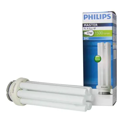 Philips PL-R Eco 4P sind energieeffiziente Leuchtstofflampen mit separater Spannungsversorgung. Diese Lampen haben eine 4-Pin-Buchse. Sie sind nur mit einem elektronischen Vorschaltgerät zu verwenden. Mit einer Länge von 149mm, besitzen die Philips PL-R Eco 17W 840 4P einen GR14q-1 Lampensockel mit 4 Pins.