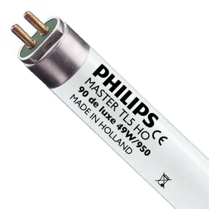 Philips TL5 High Output 90 De Luxe sind sehr effiziente Leuchtstoffröhren mit einer sehr hohen Farbwiedergabe. Diese Röhren verbessern das Aussehen der angestrahlten Objekte. Philips HO Deluxe 90 Röhren werden mit elektronischen Vorschaltgeräten verwendet . Beim Austausch einer alten Lampe, ist es wichtig, die Farbe der alten Lampe zu beachten. Jede Leuchtstoffröhre dieser Serie hat einen G5 Basistyp. Die Lampen haben eine Größe von 1450mm.