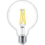 Die Philips MASTER Value LED Globe E27 93mm Fadenlampe Klar 5.9W 806lm - 922-927 Extra Warmweiß | Höchste Farbwiedergabe - Dimmbar - Ersatz Für 60W ist eine effiziente E27 LED-Lampe mit Retrodesign und der perfekte Ersatz für Ihre konventionellen 60W Lampen mit E27. Zudem strahlt sie Licht in der Farbtemperatur 2200K - 2700K Dim To Warm aus und punktet durch eine lange Lebensdauer.