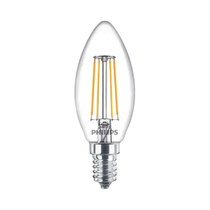 Die Philips MASTER Value LED Kerze E14 Fadenlampe Klar 3.4W 470lm - 927 | Höchste Farbwiedergabe - Dimmbar – Ersatz für 40W ist eine effiziente E14 LED-Lampe mit Retrodesign und der perfekte Ersatz für Ihre konventionellen 40W Lampen mit E14. Zudem strahlt sie Licht in der Farbtemperatur 2700K - Extra Warmweiß aus und punktet durch eine lange Lebensdauer.