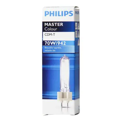 Bei der Philips MasterColour CDM-T handelt es sich um eine Gasentladungslampe mit besonders hoher Farbwiedergabe. Dazu besitzt sie eine kaltweiße Farbtemperatur und punktet durch eine umfangreiche Lichtausbeute.