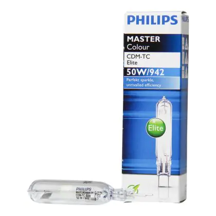 Die CDM-TC Elite ist eine kompakte Entladungslampe, die eine hohe Lichtqualität liefert. Sie entsprechen den High-End Philips CDM-TC Lampen. Die Philips CDM-TC Elite 50W 942 G8.5 (MASTERColour) ist eine kompakte Leuchtstofflampe mit einem G8.5 Lampensockel. Dieser Lampensockel ermöglicht einen einfachen und schnellen Austausch. Es ist nicht möglich, diese Lampen zu dimmen.