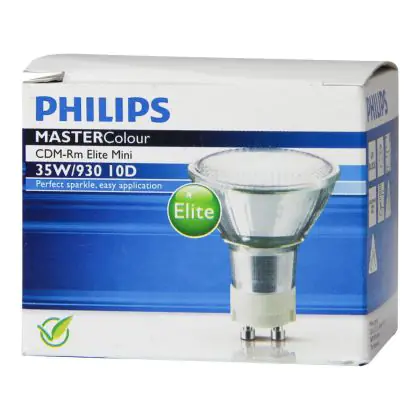 Die Philips CDM-Rm Elite Mini 35W 930 GX10 10D (MASTERColour) Entladungslampen haben einen Farbwiedergabeindex von 90-100Ra. Sie spenden ein warmes Licht (3000K). Der UV-Filter sorgt dafür, dass wärmeempfindliche Objekte keinen Schaden tragen und sich nicht verfärben.