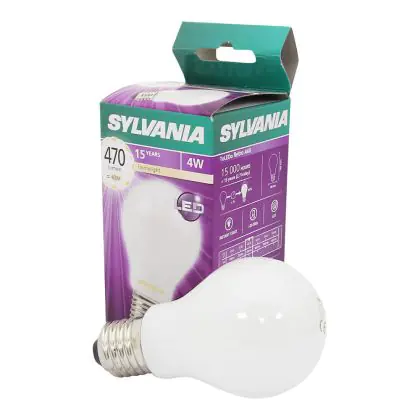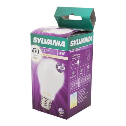 Die Sylvania ToLEDo Retro Ball E27 ist eine moderne LED-Lampe mit Retro-Design. Ihr Verbrauch beläuft sich auf 4 Watt, während sie Ersatz für eine traditionelle Lampe von 35 Watt bietet. Damit sparen Sie fast 90 % an Energiekosten ein. Die LED besitzt einen E27-Sockel und eine Kugelform. Sie spendet extra warmweißes Licht mit einer Farbtemperatur von 2.700 Kelvin.