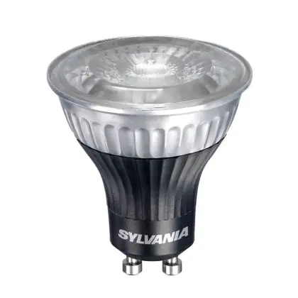 Die Sylvania Superia RefLED-Spot GU10 ES50 5.5W 400lm 40D - 827 Extra Warmweiß | Dimmbar - Ersatz für 50W ist eine effiziente GU10 LED-Lampe und der perfekte Ersatz für Ihre konventionelle Halogenlampe mit 50W und einem GU10-Sockel, bei welchem die zwei Stifte einen Abstand von 10 mm zueinander haben. Zudem strahlt das Produkt Licht in der Farbtemperatur 2700K - Extra Warmweiß aus und punktet durch eine lange Lebensdauer.