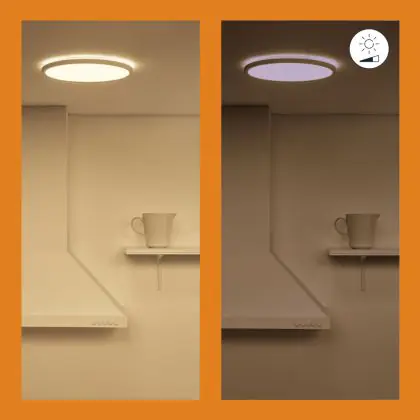 4. Dim to Warm: Durch Dimmen wird das Licht wärmer (gelber). Je stärker Sie dimmen, desto wärmer wird die Farbe.