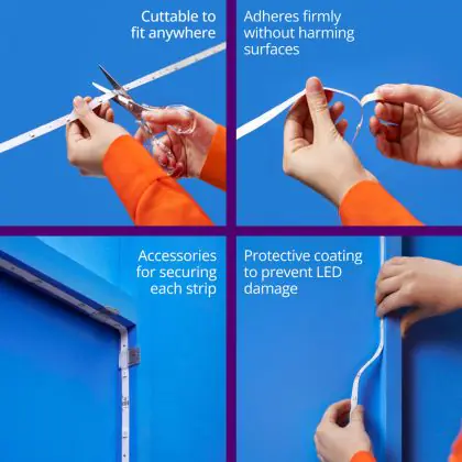 LED Streifen können Sie ganz einfach installieren, sowohl in Ihrem Haus, aber auch in Ihrer Bar, Rezeption, Ihrem Büro oder in Kombination mit dem richtigen Profil können die LED-Streifen sogar draußen verwendet werden.